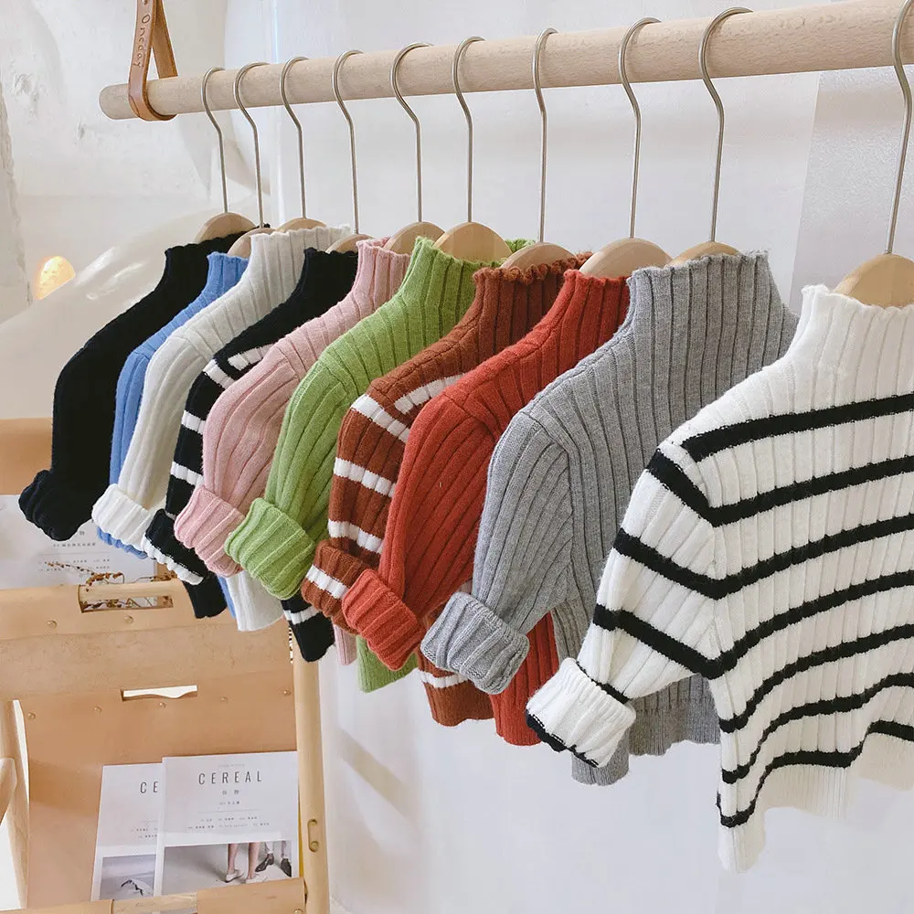 High Collar Warm Knit Newborn Pullover Sweater for Winter Daily Wear & Outings